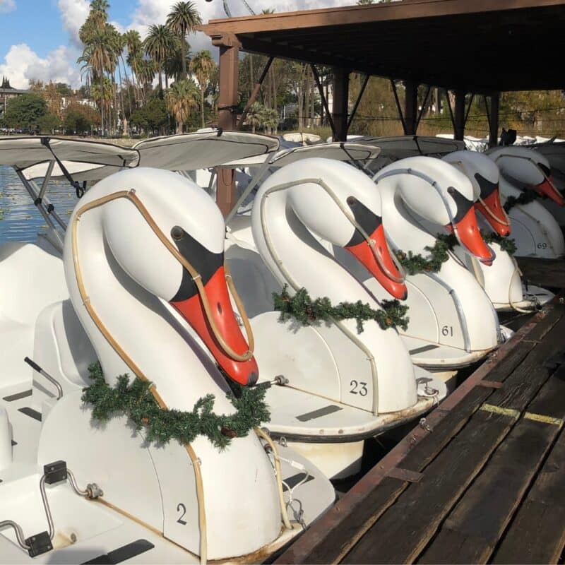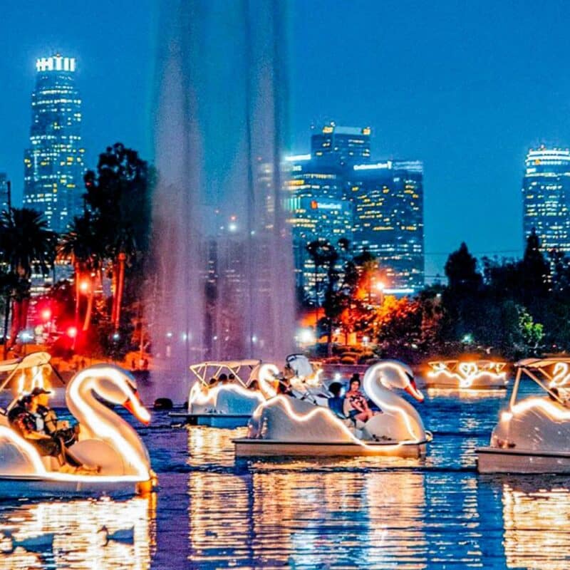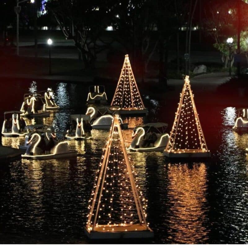Holiday Swan Boat Night Rides at Echo Park Lake and Rainbow Lagoon in Long Beach