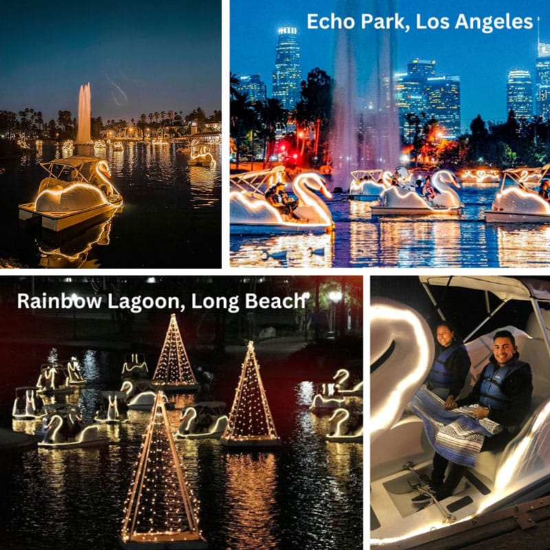 Holiday Swan Boat Night Rides at Echo Park Lake and Rainbow Lagoon in Long Beach