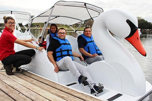Biking and Boating Free-For-Alls are great for releasing stress with a non-structured format. This is great for businesses large and small that have riders of all abilities. It enables everyone to try any of the various types of bikes and boats like kayaks, traditional bikes, swan pedal boats, and specialty cycles. Race along on a Deuce Coupe with your employees, grab five friends and take a Surrey for a spin, or enjoy a quiet ride on a kayak. We offer a wide variety of vehicles that seat 1-4 people. The best part is you can switch from product to product on a whim with this hop-on-hop-off structure.