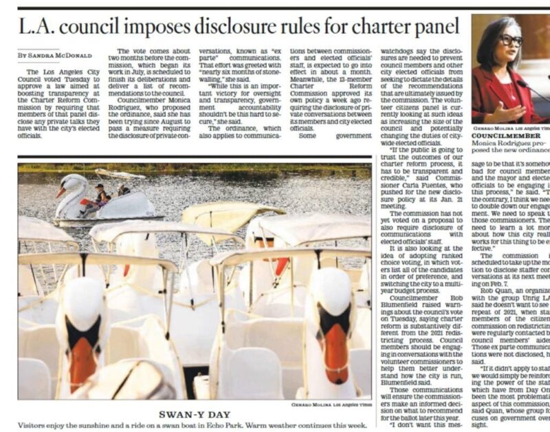 Echo Park Swan Boats Featured in LA Times Council Article