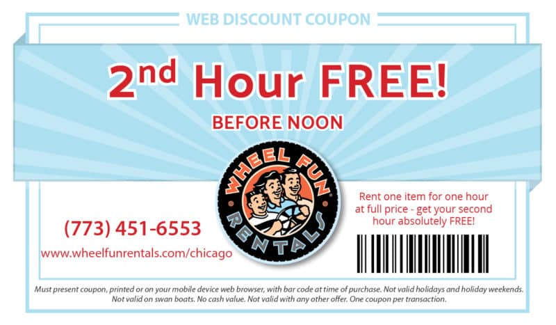 Enjoy this bicycle rental coupon valid at Humboldt Park. Just print this page and present to your rental clerk at the time of purchase, or show this page to the rental clerk on your mobile device.