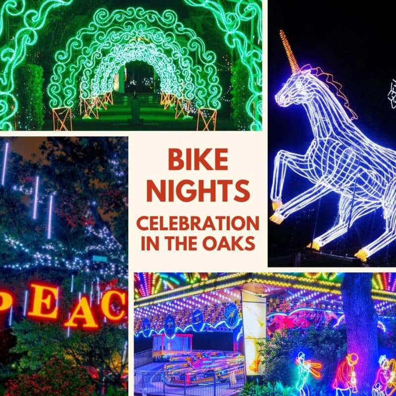 NOTE: the Celebration in the Oaks will take approx. 30 minutes to ride through. If you finish early, you may continue to ride the bike around the park but MUST return your bike rental by 9:10pm, see map for directions back to Wheel Fun Rentals bike return.