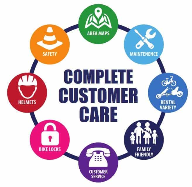 Bike-Share docking stations, although open 24 hours, are all unmanned. Bikes in these systems do not get looked at between every customer and at times are not well maintained. Plus, docking stations have a tendency to fill up or be completely empty during peak commuter hours. Wheel Fun Rentals’ kiosks are always staffed and our friendly and knowledgeable employees can assist you in picking out the right bike and becoming familiar with it, adjusting items like seat height, check tire pressure, fit you for a helmet, give you verbal directions, and so much more. Our fleet is well maintained as it’s looked over by a certified mechanic regularly, and inspected for safety before every customer goes out. Wheel Fun Rentals has a large fleet size to avoid any equipment shortages – there is always something to pedal at our locations.